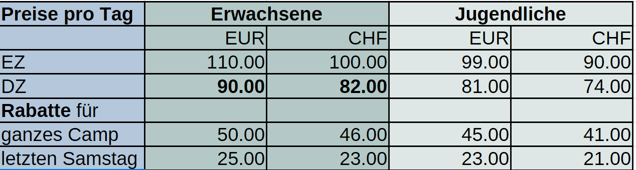 Eine Unfall-Versicherung ist Sache der Teilnehmenden.